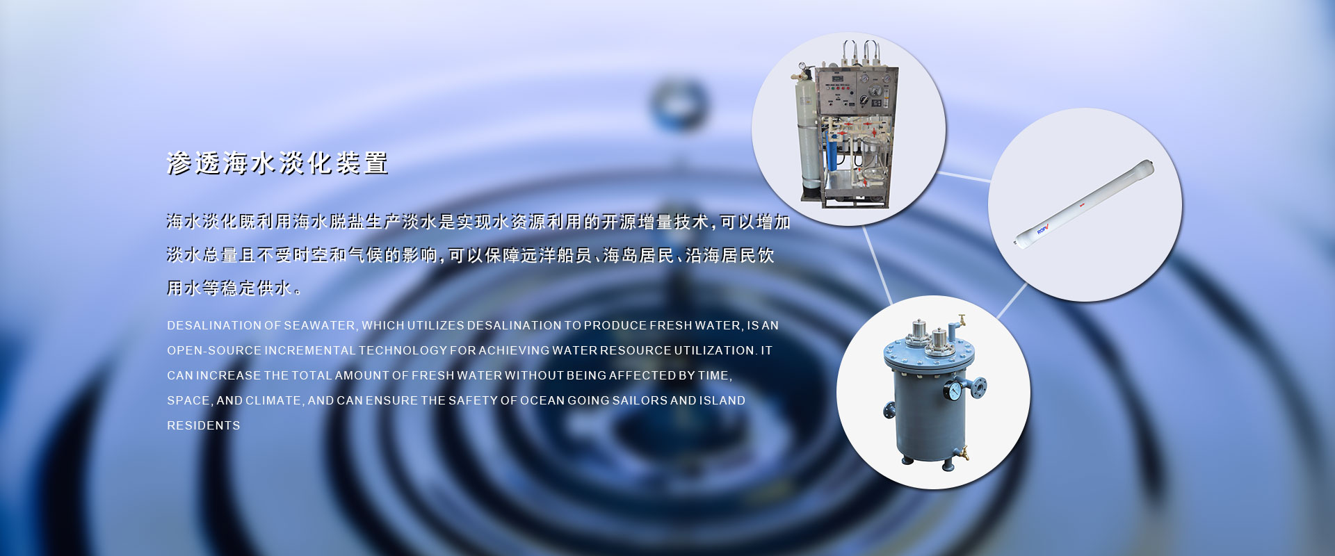 在過去的17年里我們?yōu)榇疤峁┖KO(shè)備解決了因船的續(xù)航長而不能解決的淡水問題,全球的水資源越來越少,我們以改善遠洋船員、海島居民的生活水資源為已任,以科技創(chuàng)新、誠信經(jīng)營為核心競爭力。